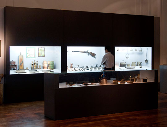 About 500 everyday objects and 75 photographs formed an extensive panel of the saga of the colonization in the Southern states of Brazil, highlighting the design carried out by Italian and German immigrants from 1824 until early in the 20th Century. With curatorship of Calito de Azevedo Moura and Alfredo Aquino, the objects were selected from 3,500 pieces belonging to the Azevedo Moura Collection. Housewares, furniture, tools, pots, glasses, storage containers, carpentry and farming articles, personal items, ornaments, decorated house doors and toys were among the exhibits. Exhibition design by Tina and Lui Lo Pumo.