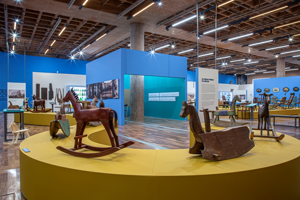 The exhibition showcases doors, furniture, work tools, construction elements, household utensils, graphic design pieces, and photographs that tell a bit of the history of German (beginning in 1824) and Italian (in 1875) immigration in Southern Brazil. The immigrants brought not only agricultural experience but also skills practiced during the off-season, throughout the long European winters, working as carpenters, joiners, blacksmiths, masons, potters, ceramists, textile workers, and shoemakers. In Brazil, they combined this knowledge with the conditions and materials they found.