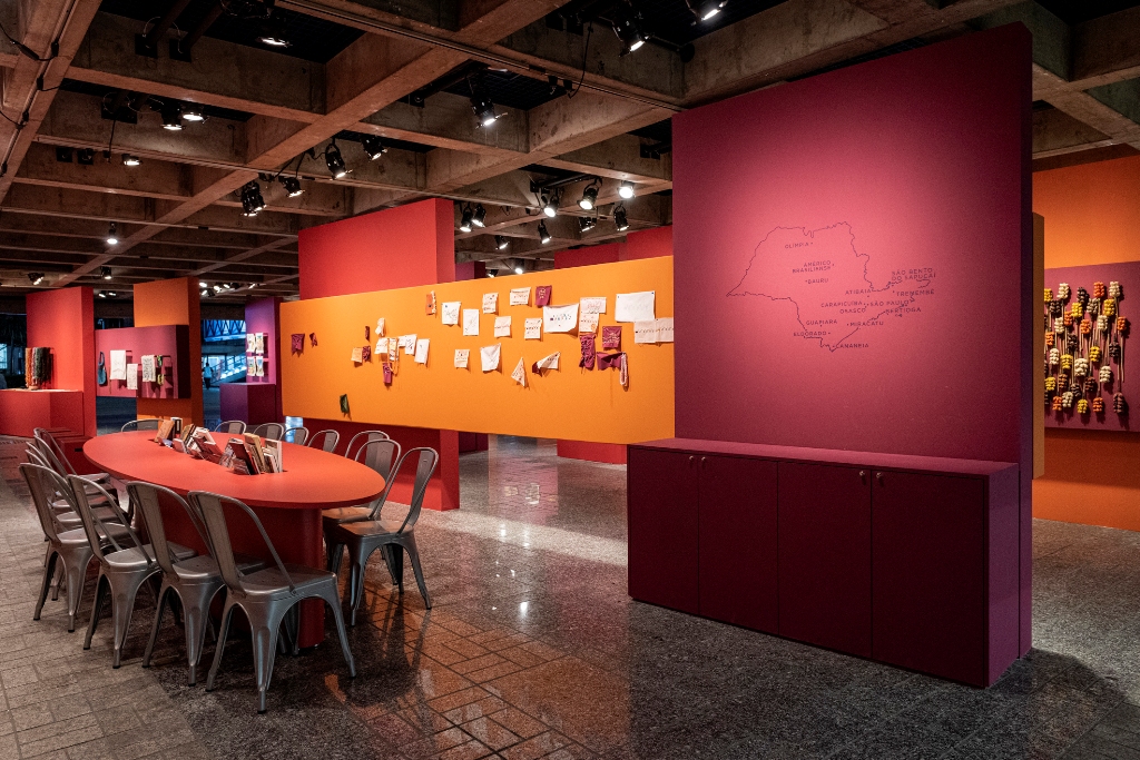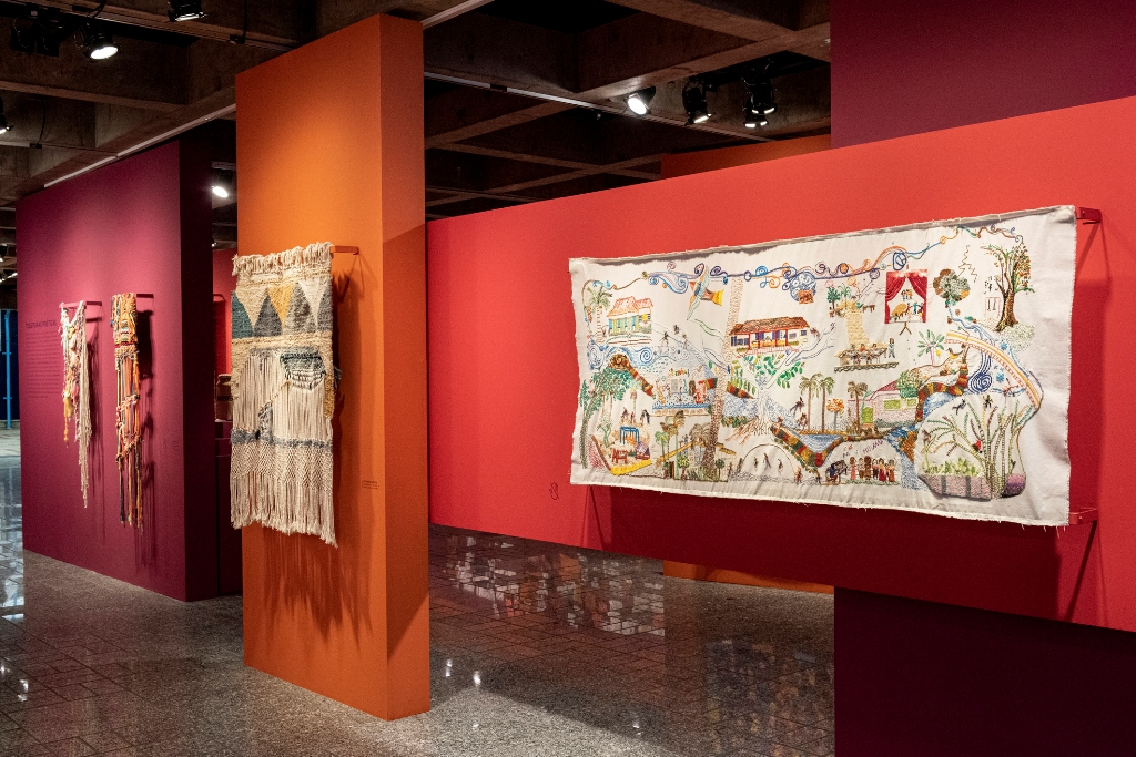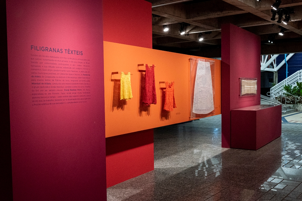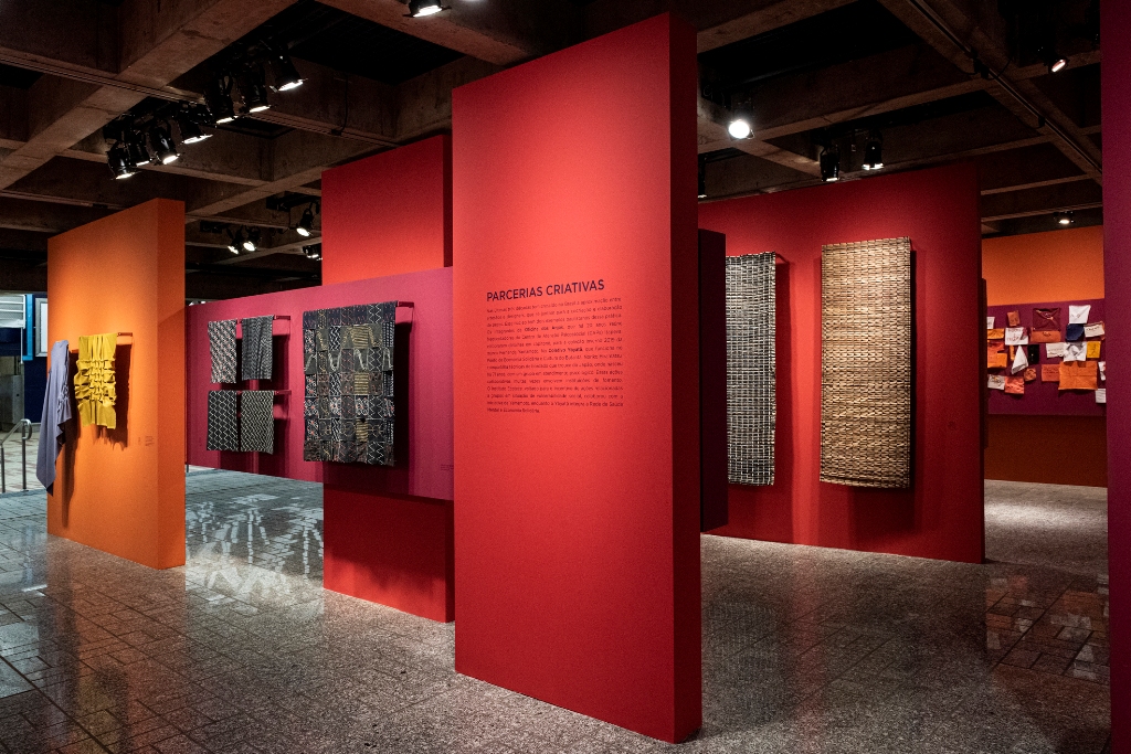 The EntreMeadas [BetweenWeaves] exhibition proposes an immersion into the world of Brazilian textile handicraft, featuring a wide range of traditional techniques and contemporary initiatives. The show values the plurality of Brazil’s material and immaterial culture and rethinks the place of handicraft today, perceiving it as a possible agent for economic transformation and social emancipation. It focuses on the state of São Paulo, the most industrialized in Brazil, shedding light on production of fabrics, basketry, clothing accessories, and personal objects that boost the economy of local communities. Based on a survey and mapping of teachers, artisans and handicraft groups throughout the state of São Paulo, the show reveals know-how in lacemaking, embroidery, basketry, and weaving that have emerged from this area. It was presented at 3 cultural centers belonged to Sesc São Paulo. More than an exhibition, EntreMeadas is a platform for visibility and recognition of textile design in the state of São Paulo, with special attention to women’s collectives where this activity is an important income source.