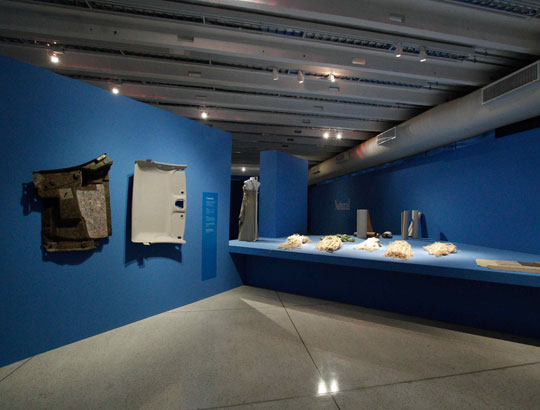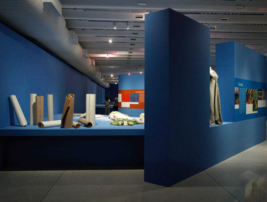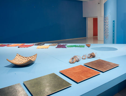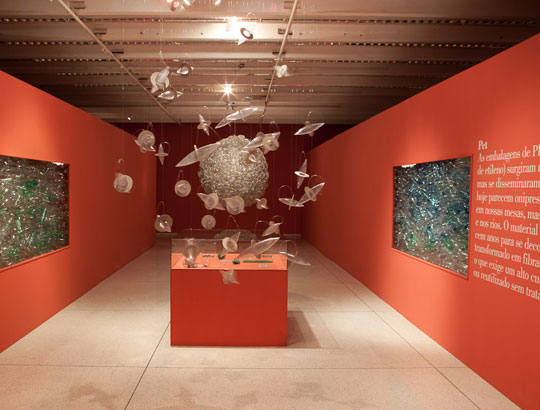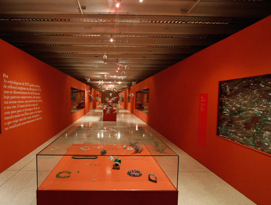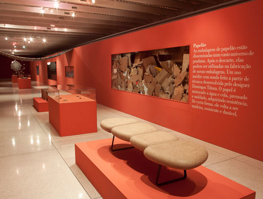 There is a movement around the world about raw materials with which products are made. Brazil has especial conditions in this area, and on both fronts covered by the issue – natural and artificial. The first hall of the exhibition showed use of raw materials from the rich Brazilian biodiversity, including plants from Amazon, hides of fish, palm tree fibers, a variety of seeds, fiber from banana trees and rubber mats produced in micro- plants for latex processing in the forests and operated by rubber tree tappers themselves, using simple and low cost techniques. The second hall presented creations made from waste, a practice widespread in Brazilian society even before the word ecology became well known. Among the examples shown were objects created with aluminum trimmings, tires, cardboard boxes and plastic bottles. Exhibition design by Pedro Mendes da Rocha.