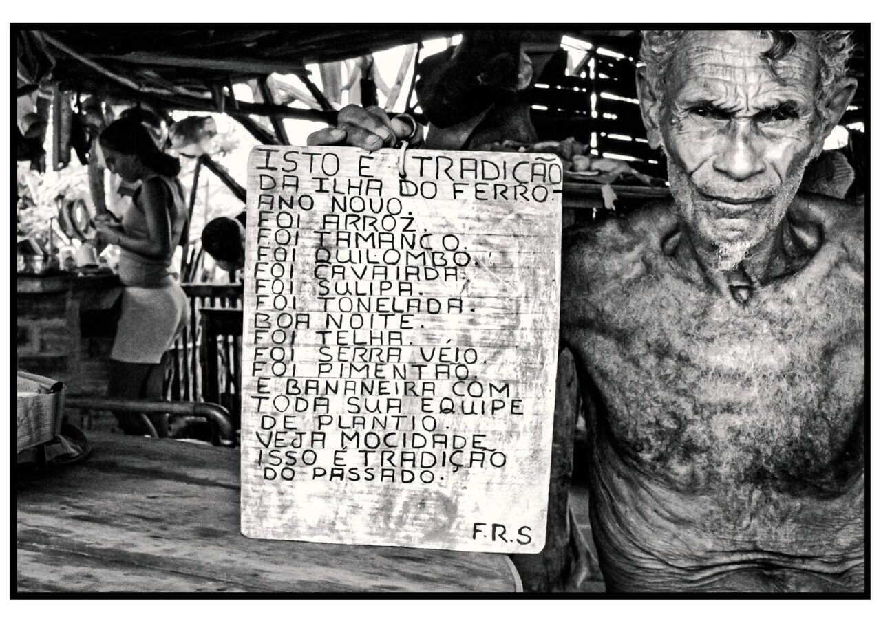 A Ilha do Ferro, povoado no município de Pão de Açucar, no sertão alagoano, é um dos principais celeiros da atual criação popular brasileira. A exposição “Correnteza” apresentou 25 fotos em preto e branco tiradas nos anos 1980 pelo fotógrafo e cineasta Celso Brandão, registrando um momento seminal, em que ele e a museóloga Cármen Lúcia Dantas conhecem a comunidade. A tradição na lida com a madeira e nos trabalhos têxteis da região do Baixo São Francisco, já era antiga, mas foi a partir desse encontro que uma nova dimensão se abre. A aquisição dos primeiros objetos de Fernando Rodrigues dos Santos e as fotos e vídeos feitos por Celso serviram de abre-alas para divulgar essa arte para além das suas divisas. Ao disponibilizar uma seleção de imagens de 40 anos atrás na pequena galeria Cabra, a mostra devolveu aos habitantes o que é deles – uma história compartilhada. “Correnteza” teve curadoria de Cármen Lúcia Dantas e Cintia Ribeiro e consultoria curatorial de Adélia Borges. A efervescência cultural da Ilha do Ferro hoje contamina familiares, vizinhos da região do Baixo São Francisco, e vai alargando as expressões dos moradores, não só em artes visuais, design e artesanato, como também nos folguedos populares, na contação de histórias e na música.
