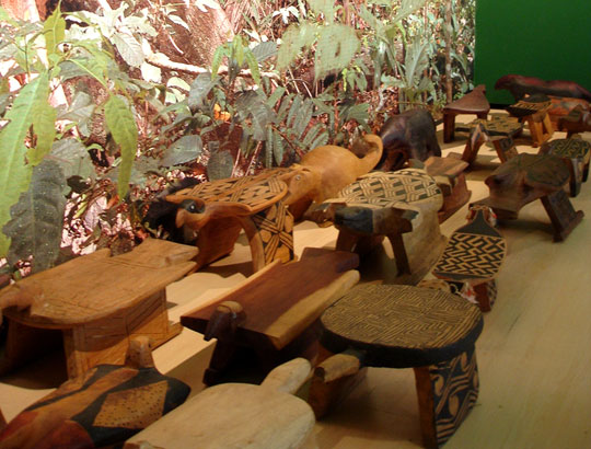 A mostra exibiu 90 bancos coletados nas duas últimas décadas junto a 17 povos indígenas que vivem na Amazônia brasileira – os Asurini, Bakairi, Kayabi, Kalapalo, Kamayurá, Karajá, Kuicuro, Matipu, Mehináku, Suyá, Tapirapé, Tukano, Wai-wai, Waurá, Wayana-Apalaí, Yawalapiti e Yudjá. Realizada no contexto do Ano Brasil na França, ela ocupou o Espaço Brasil, local escolhido pelo Ministério da Cultura brasileiro para concentrar várias atrações. Os índios transformam com sabedoria os elementos da natureza a seu redor para fazer os objetos de que necessitam, inclusive as madeiras, as resinas e os corantes que empregam para fazer seus móveis. Sua atitude não é predatória, e sim de um respeito reverencial à mata onde vivem. Nas tribos indígenas, o ambiente natural e o ambiente construído pelo homem não se chocam, mas se integram em harmonia. Coleção de Rubem Pereira de Ávila e cenografia de Ronaldo Barbosa.